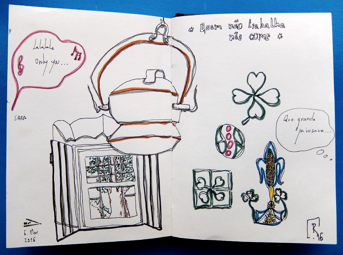 Há locais assim encantadores para desenhar, apreciando os pormenores arquitectónicos e a decoração dos interiores, fantástica sobretudo pelos azulejos.